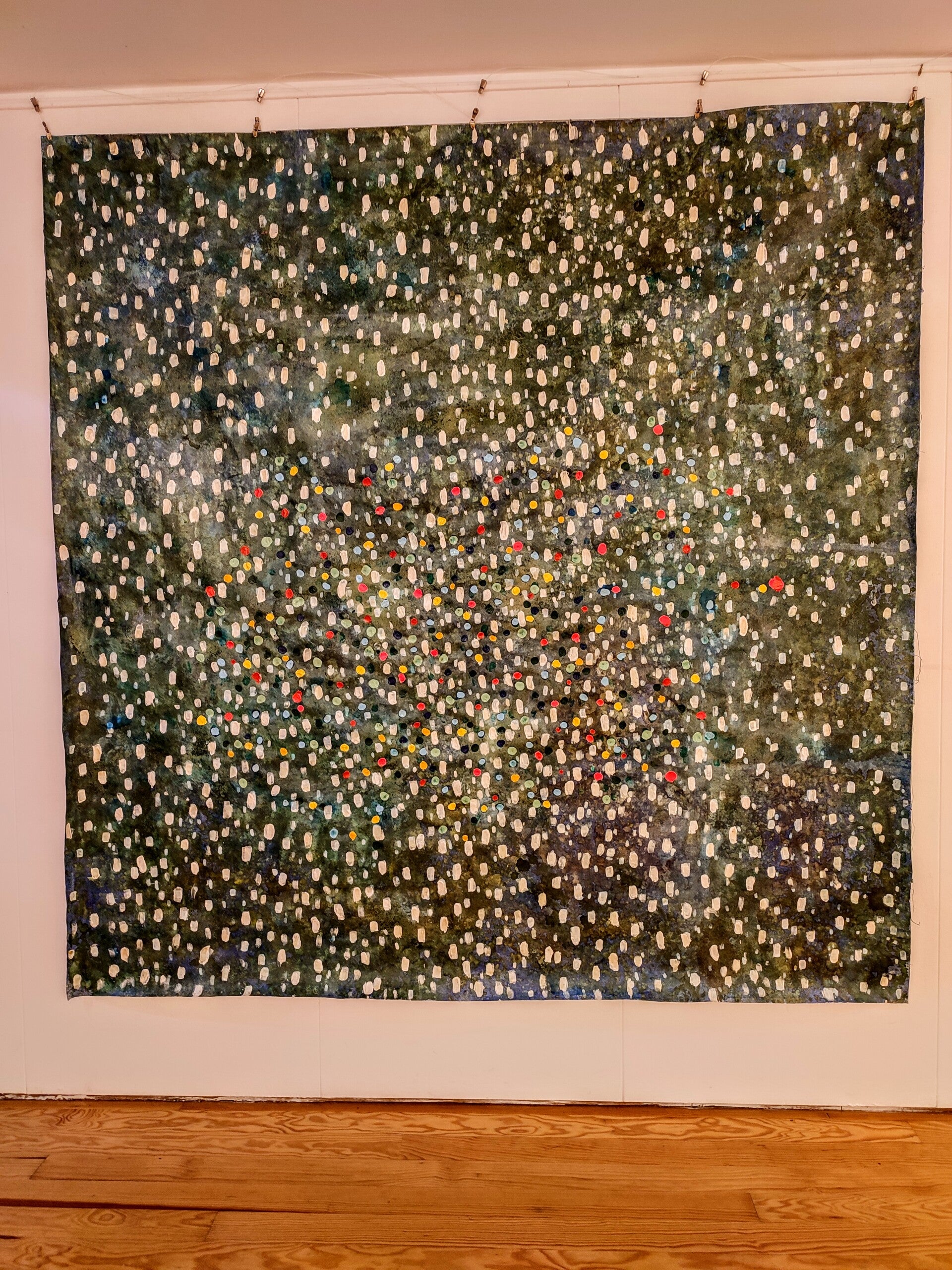 En esta obra, he fusionado tintas y acrílicos para explorar la profundidad del cosmos y la intrínseca conexión humana con el infinito. Cada pincelada simboliza un destello de luz en la vastedad oscura, representando las múltiples posibilidades de la existencia. Es una invitación a meditar sobre lo etéreo y lo desconocido, infundiendo una energía contemplativa y misteriosa en cualquier espacio.